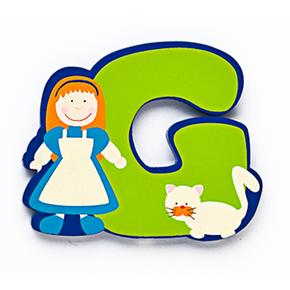 Todas las letras del abecedario, para componer mil nombres y palabras. Son de madera policromada y muestran los personajes y detalles de los cuentos tradicionales.