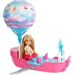 Barbie - Barco Mágico de Chelsea, un set que incluye una muñeca Chelsea con un conjunto y accesorios, un barco con un globo y alas móviles, un perrito y una manta. La Cama Voladora de Chelsea tiene alas móviles y globo giratorio ¡Súmate a Chelsea en su viaje mágico por Dreamtopia a bordo del Barco Mágico de Chelsea y deja volar la imaginación por tus reinos preferidos! Esta es la nave perfecta para explorar las tierras de Dreamtopia: ¡la cama se convierte en un barco volador y tiene un montón de encantadoras sorpresas! Haz rodar el barco adelante sobre sus ruedas escondidas para ver cómo se mueven las alas y cómo gira el globo aerostático.