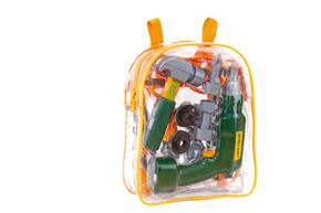 Con esta práctica mochila de bricolaje los más pequeños manitas de la casa podrán guardar y transportar sus herramientas. El juego incluye: martillo, tuercas, alicates, llave inglesa, destornillador, gafas protectoras y un taladro a pilas! Construye tupropio mundo con Bricotaller.