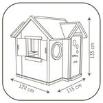 ¡Qué preciosidad de casita! con su llave giratoria, timbre, un bonito techo con 2 tejados, ventanas abatibles, ranura para depositar el correo y unas originales aberturas en forma de ojo de buey.