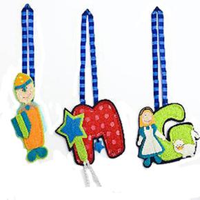 ¡Letras de cuento! Cada una con un personaje o detalle de sus cuentos favoritos. De fieltro y tela.