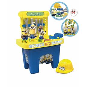 Gran banco de trabajo personalizado con los personajes Minions, es perfecto para los niños amantes del bricolaje. Este completo conjunto incluye todas las herramientas clásicas, adaptadas al tamaño de los más pequeños.