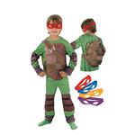 Disfraz Tortuga Ninja 5-7 años, el traje de ninja para los fans de las Tortugas Ninja. Un disfraz de 100% poliéster, compuesto por mono con caparazón y 4 antifaces de colores.